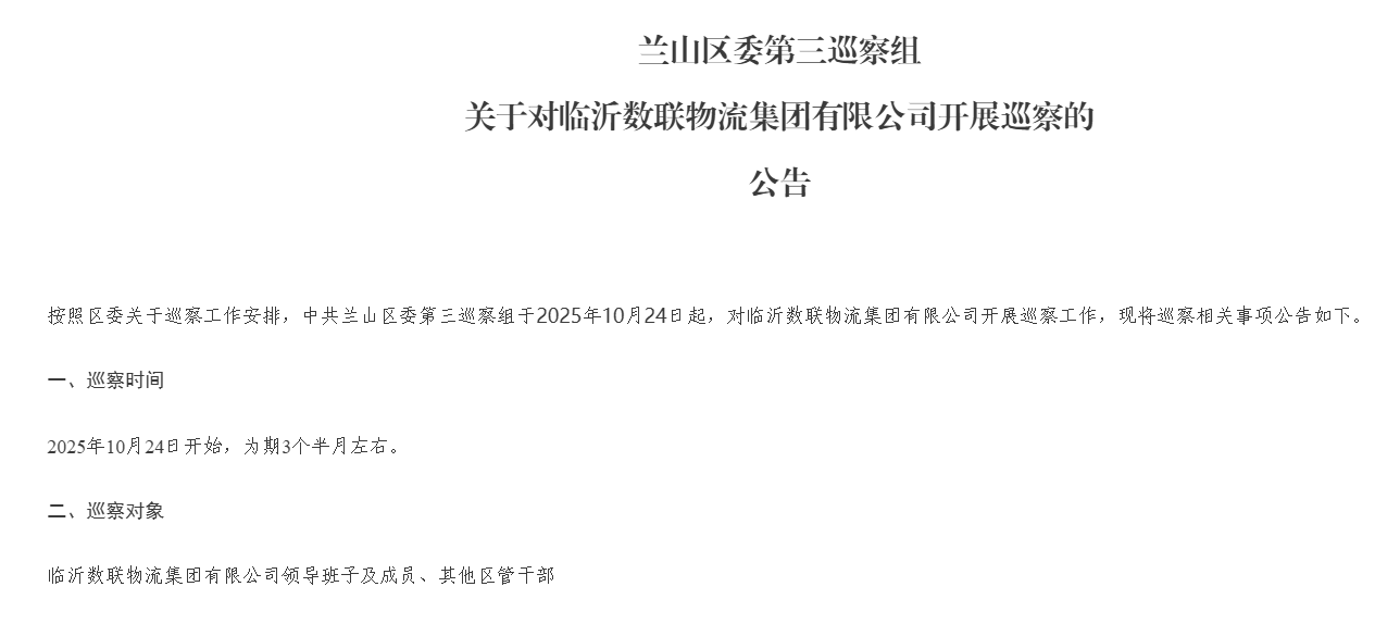 兰山区委第三巡察组关于对临沂数联物流集团有限公司开展巡察的公告